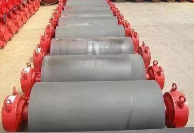 改向滚筒可用于输送带180°、90°或<45°的方向改变。一般布置在尾部的改向滚筒或垂直重锤式的张紧滚筒使输送带改向180°,垂直重锤张紧装置上方滚筒改向90°,而改向45°以下一般用于增加输送带与传动滚筒间的围包角。