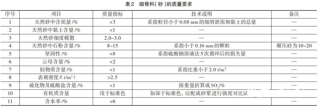 质量控制主要控制粗骨料的超逊径和细骨料的石粉含量及细度模数,混凝土用天然砂石骨料加工,质量要求详见表1和表2。