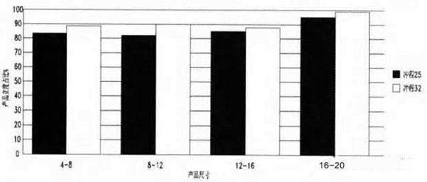 冲程就是圆锥破碎机松边排放口至紧边排放口的距离。在现场我们用单缸液压圆锥破机2种不同冲程,破碎相同的石料,生产出来的石料进行比较。具体数据见图1。